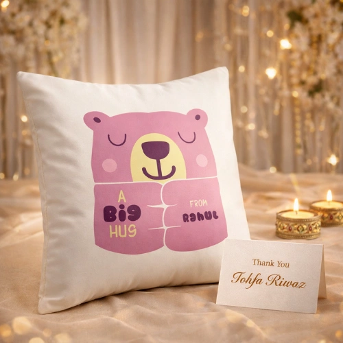 Personalized “A Big Hug” Cushion with Custom Message Card | Curated by Tohfa Riwaz